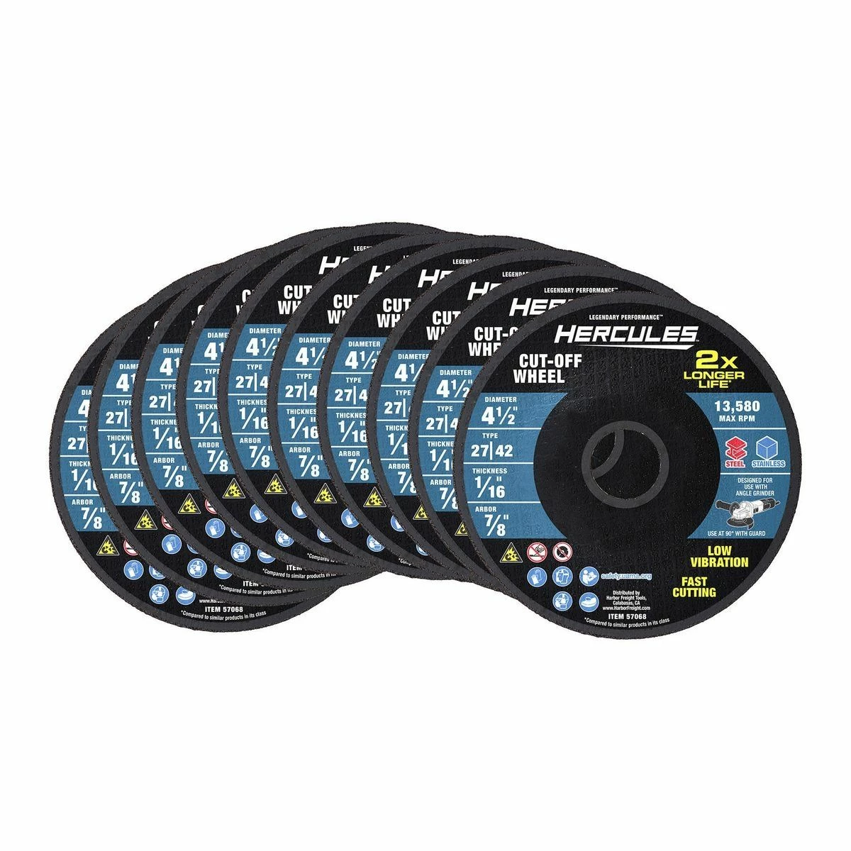 HERCULESβ’ cut-off wheels are constructed with premium abrasive grains and a high quality resin bond that delivers up to 2X longer life*. Ideal for use with a wide variety of metalworking cutting applications, these cut-off wheels are designed to deliver super fast, clean cuts. Designed for use with angle grinders using the proper safety guard.