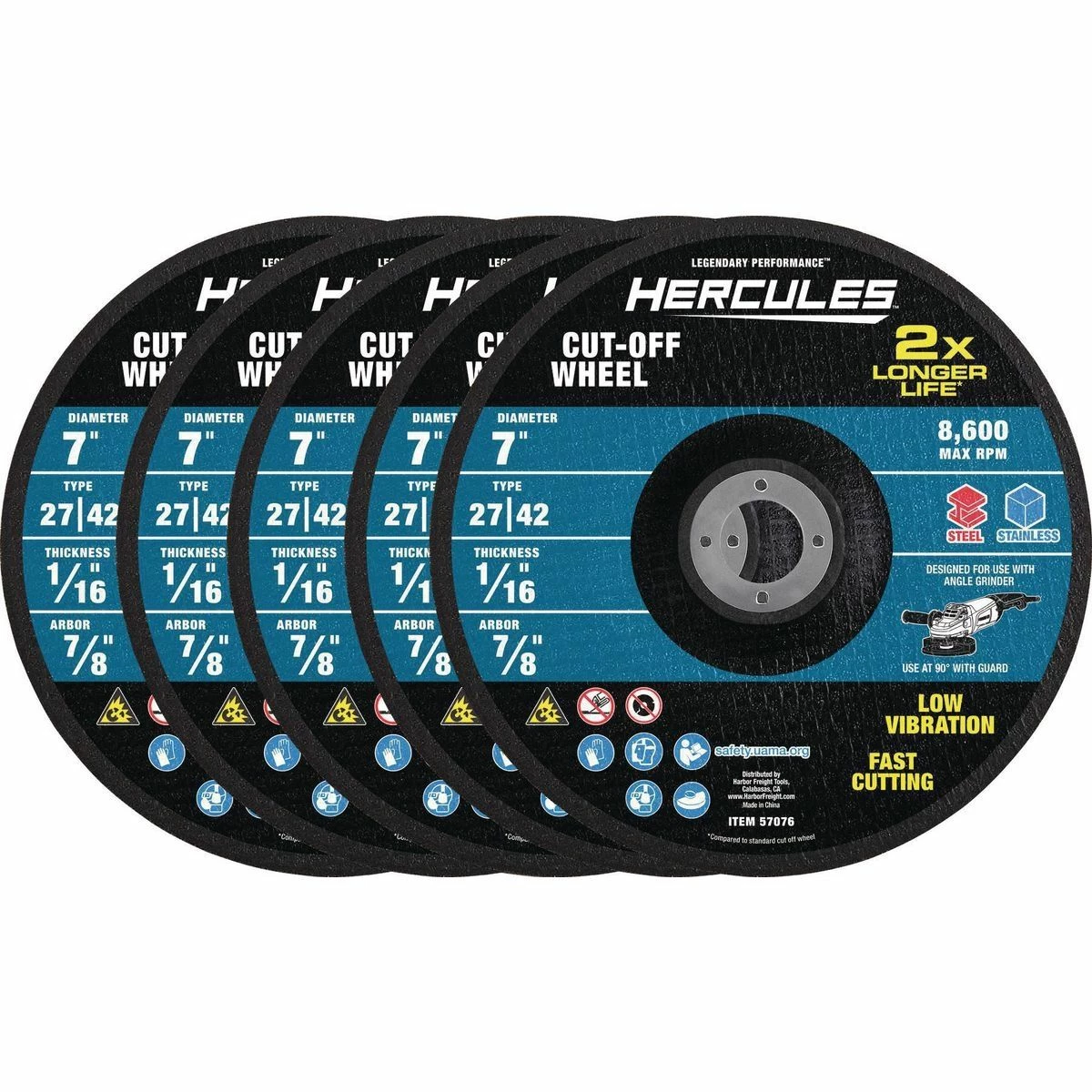HERCULES™ cut-off wheels are constructed with premium abrasive grains and a high quality resin bond that delivers up to 2X longer life*. Ideal for use with a wide variety of metalworking cutting applications, these cut-off wheels are designed to deliver super fast, clean cuts. Designed for use with angle grinders using the proper safety guard.