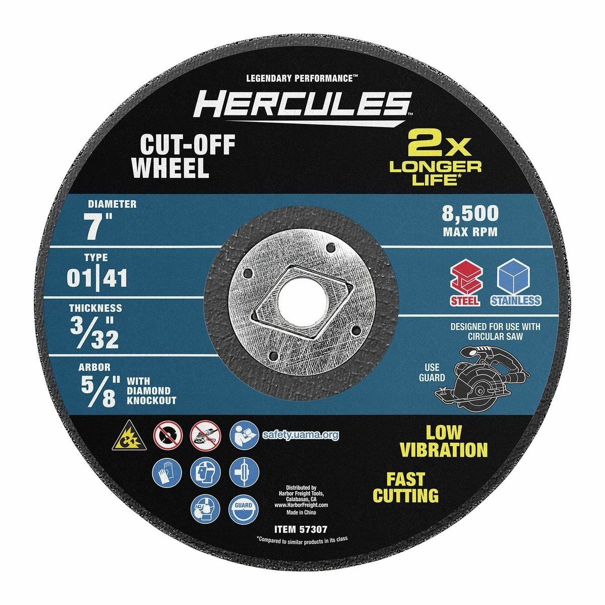HERCULESβ’ cut-off wheels are constructed with premium abrasive grains and a high quality resin bond that delivers up to 2X longer life*. Ideal for use in a wide variety of metalworking cutting applications, these cut-off wheels are designed to deliver super fast, clean cuts. Designed for use with circular saws.
