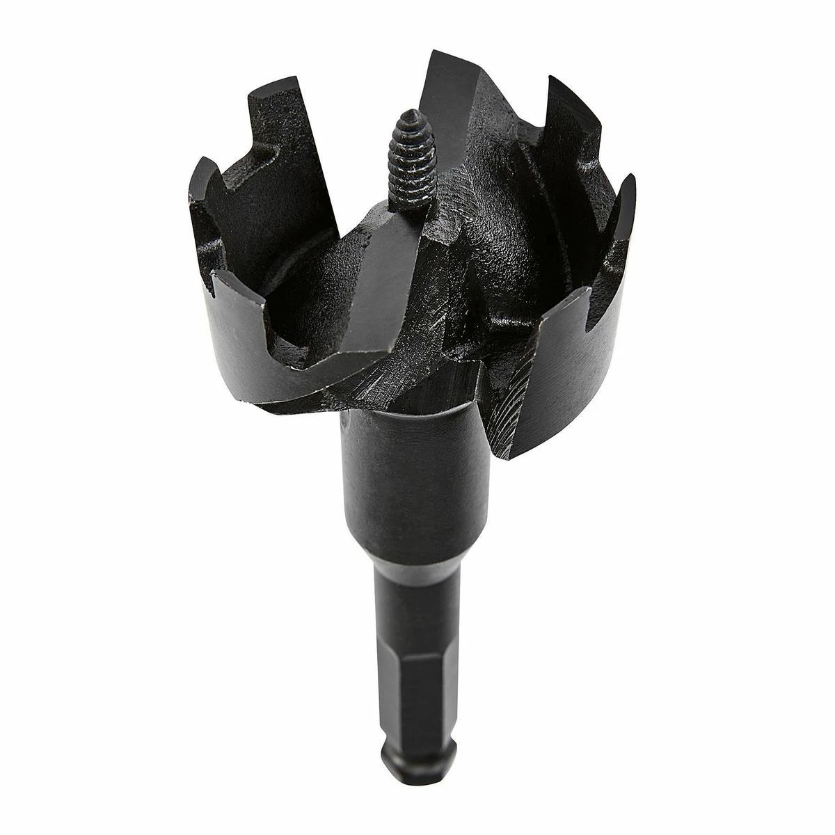 The HERCULES™ 2-1/8 in. Self-Feed Bit is precision machined for 6X faster drilling* with minimal run-out. This means cleaner, precisely centered holes every time. The adjustable and removable feed screw pulls the bit straight into the workpiece for maximum power and speed. The cutting edge is resharpenable for extra long life.