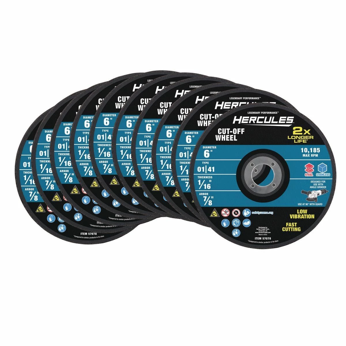 New 🧨 HERCULES 6 in. x 1/16 in. x 7/8 in. Type 01/41 Metal Cut-off Wheel 10 Pk. πŸ›’