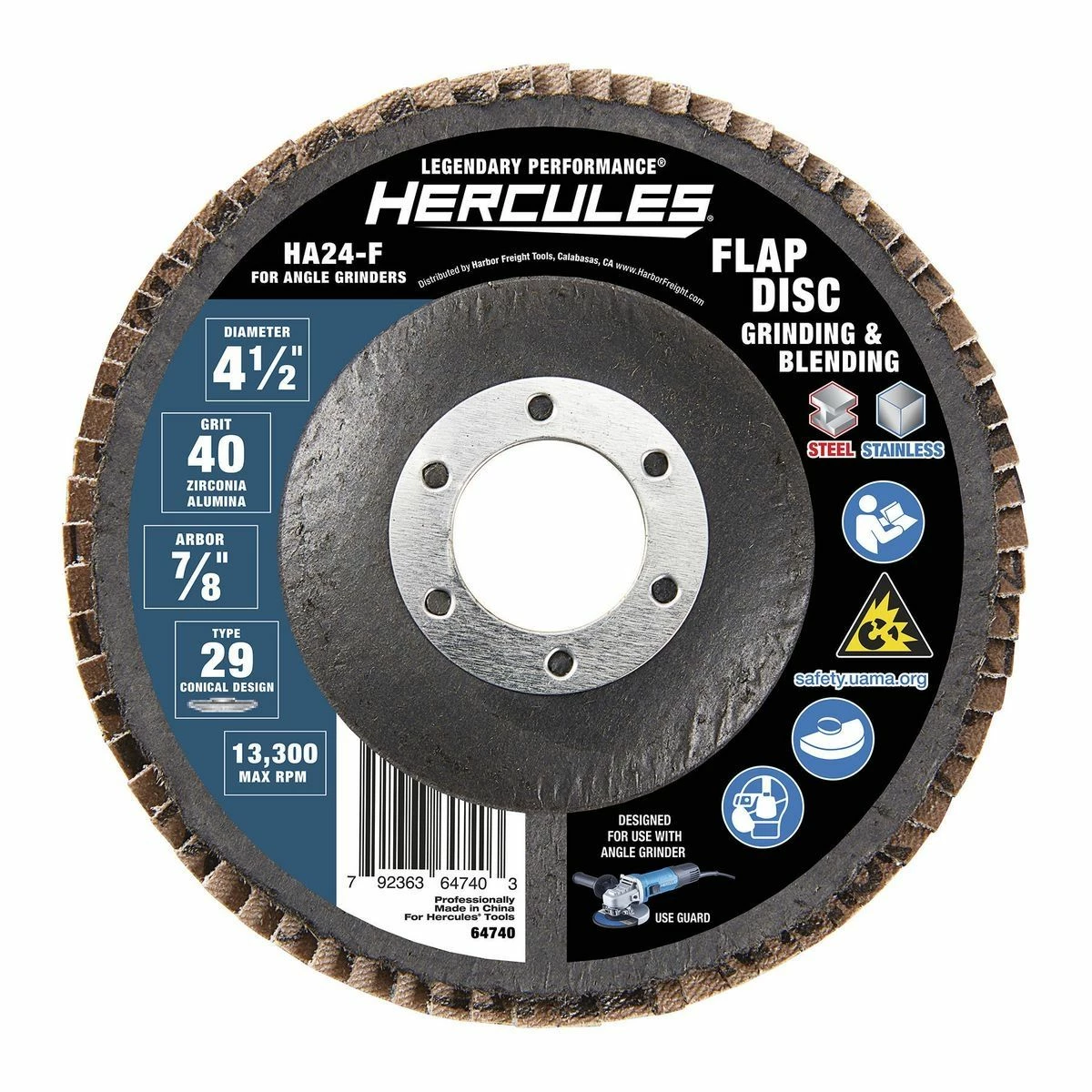 This HERCULES™ flap disc has a premium blend of tough zirconia abrasive for ultra-fast stock removal and surface finishing. The durable fiberglass flap plates flex under pressure for easy smoothing and shaping of contours.