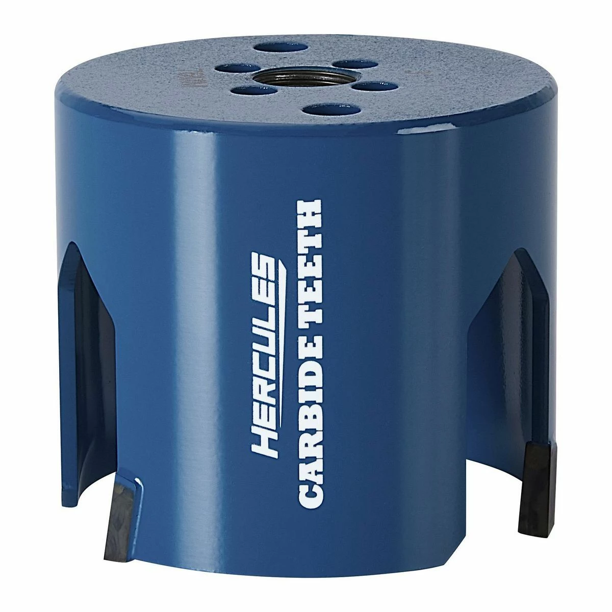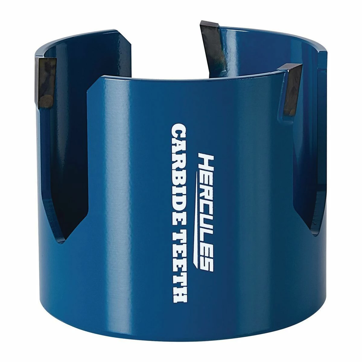 The HERCULES™ 3 in. Multi-Material Carbide Hole Saw is designed with premium carbide teeth that are tougher and longer lasting.* This multi-material hole saw is ideal for fast rough-cuts in the toughest materials, including wood with nails, fiber cement, plaster board, ceramic tile, wood, brick, block, drywall, and roofing.